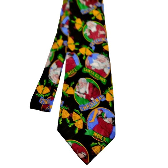 Addiction Men's Christmas Silk Tie Santa Clause Tree Black Greetings Noel Bells