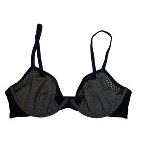 A very sporty, grey, navy and black perforated and mesh contrast, plays well with ultra-soft micro knit jersey cups. Great every day essential. Comfortable, as well as practical.