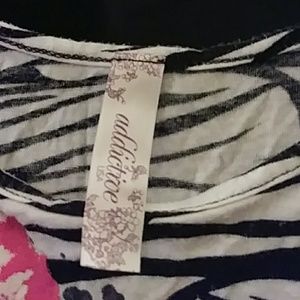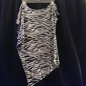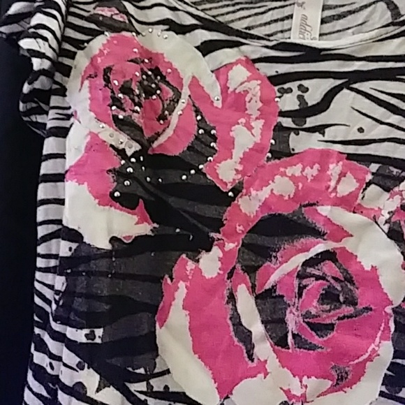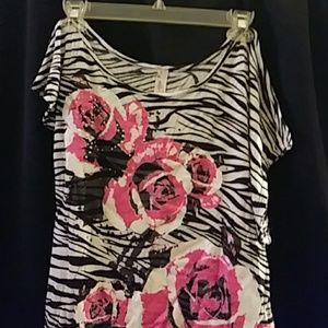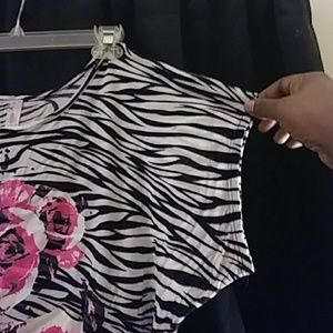 Off the shoulder Zebra print top hot pink flower pattern silver studs on front 70%polyester 26% Rayon 4% spandex size small good condition
