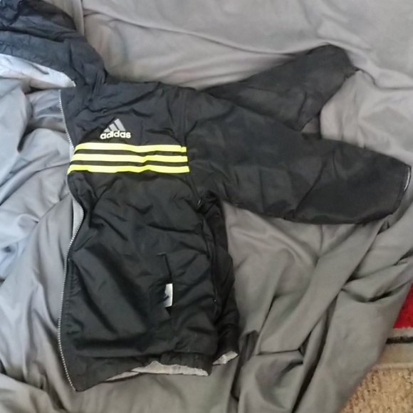 Addidas Reversible Jacket -hooded, fair/good condition, cuffs are a bit worn, tiny snag,