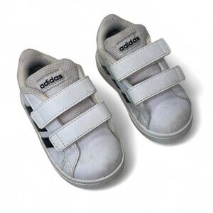 Addidas Toddler Grand Court 2.0 Adjustable Strap Sneakers Size 5 White w Black