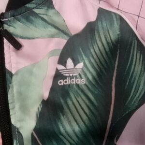 adidas size xs lightweight windbreaker jacket. in great condition. really hope leaf pattern on pink make this jacket really stand out!