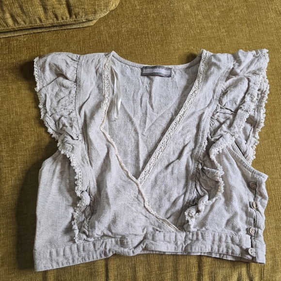 Elegant cream top with ruffled sleeves, perfect for any occasion.