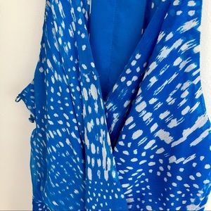 Size medium but tailored to fit a small.Completely lined and elastic band at the waist. Missing top button and small snag along bust line. Pictured. In good pre-loved condition!