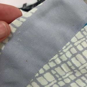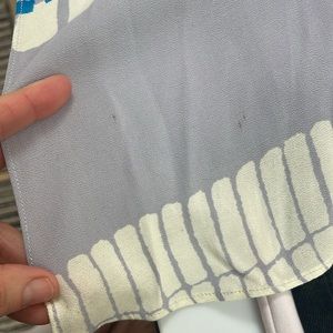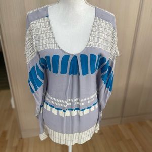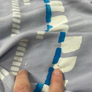 Beautiful scoop neck blouse. Can wear with or without the tie at waist. I’ve worn with jeans and to dressier events with long wide pants. Ready to rotate. Not new but in good pre owned condition small marks/ stains shown in last few photos.