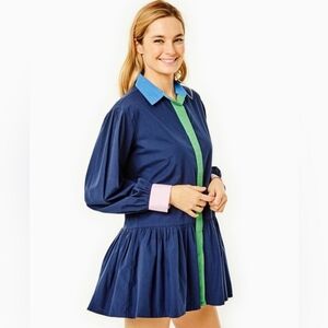 Addison BAY LANE Shirt DRESS MINI NEW$178 Dropwaist Blue Pink Green Preppy L XL
