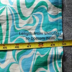Retro wave vibes. This Addison Bay cotton caftan dress (XS) is the ultimate vacay essential — lightweight, breezy, and covered in bold aqua + teal swirls. Wear it as a beach cover-up or as a boho summer dress. Easy, comfy, and perfect for travel or resort lounging.