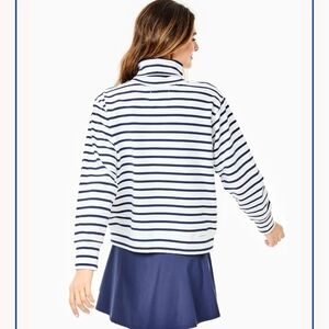Addison Bay Luxe Terry Lyndon Pullover Sweatshirt Navy Stripe Small