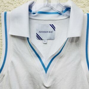 Addison Bay Sleeveless Tennis Dress White Blue Trim Athletic Polo Style Size S