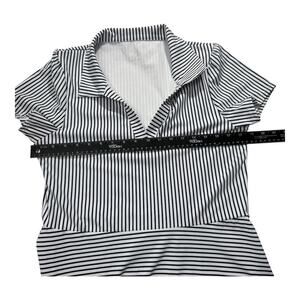 Chic mini dress with a flattering fit. Features black and white stripes. Perfect for casual outings.