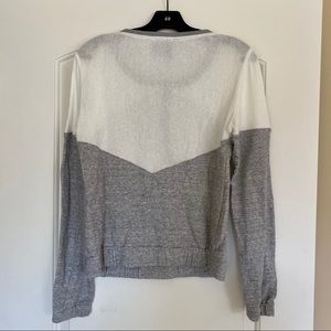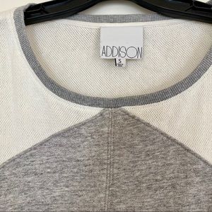 Addison Gray & Cream Colorblock Sweatshirt. From Saks. Lightweight gray sweatshirt with a cream waffle knit colorblock detail. Size S