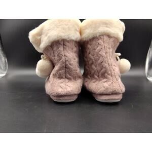 Addison Meadow Cable Knit Slipper Bootie Socks Fuzzy Lined Pom Poms Women’s MD