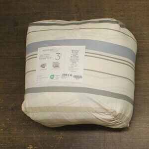 A colorblocked update on timeless stripes brings a fresh feel to the converter set. It reverses to a neutral solid to give you options. Features Approx. dimensions: Twin: 68" x 90" comforter, 1 20" x 26" sham Full/queen: 90" x 90" comforter, 2 20" x 26" shams King: 106" x 90" comforter, 2 20" x 36" shams Medium warmth Reversible, colorblocked stripes to solid Shell, fill: 100% polyester Machine wash Imported