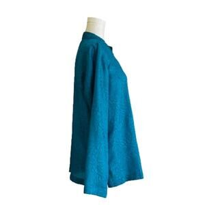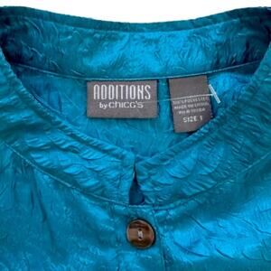 Addition by Chico’s Blue Peacock Crinkle Embossed Button Front Blouse Top Medium