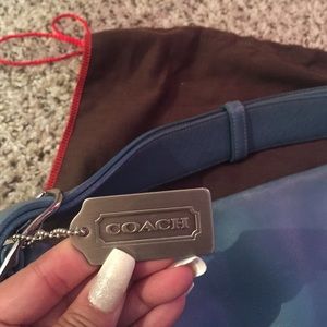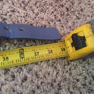 There are some stains haven't inspected this bag in a while and the strap is doubled so it looks short but it can be as long as 39 inches