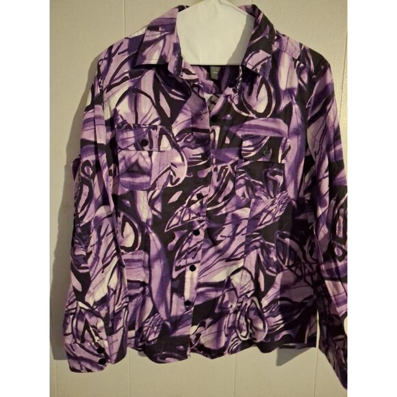 Additions By Chicos Purple Abstract Floral Long Sleeve Shirt Size 2 Chest 20...
