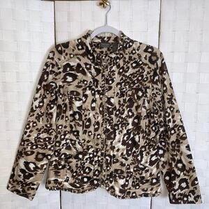 Additions By Chicos Ruffled Blazer Jacket Animal Print Women’s Size Medium
