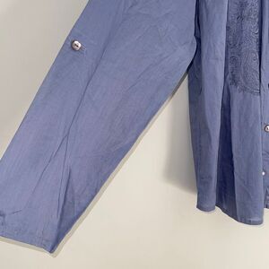 Additions By Chico's Womens Button Down Shirt Roll Tab Sleeve Embroidered Blue 3