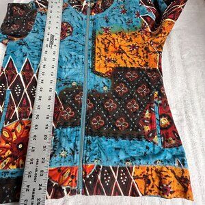 Additions Chico’s Women’s Abstract Patchwork Zip Up Jacket Colorful Ethnic Boho