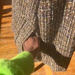 This jacket is absolutely gorgeous with hands of warm, brown, black and white