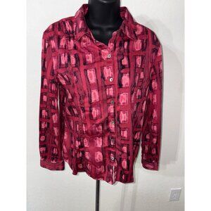 Additions by Chico s Long Sleeve Red & Pink Button Up Blouse Size 1