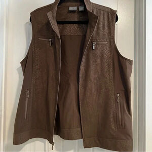 Additions by Chico’s Cocoa Brown Snake Print Zippered Vest. Size 3.
