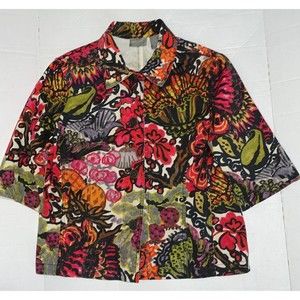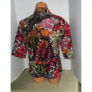 Additions by Chicos Colorful Hawaiian Luau floral Button Artsy Fun Jacket Top 1