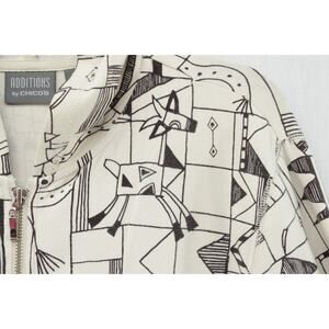 Additions by Chico's Hoodie Women 2 sz L Beige Jacket Geometric Animals Art Deco