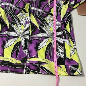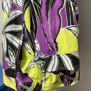 Additions by Chico's Womens Full Zip Jacket Neon Green Purple Leaf Print Sz 3(L)