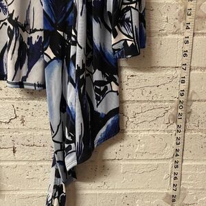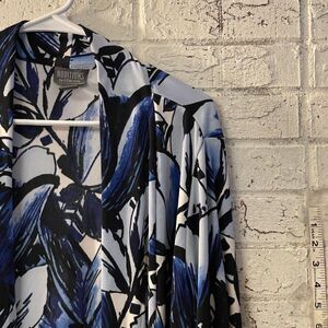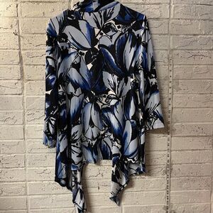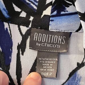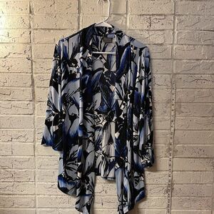Additions by Chico’s Blue Black White Floral Open Front Cardigan - Size 2 (L/XL)