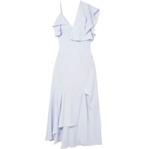 Adeam Asymmetric Ruffled Crepe Midi Dress in Sky Blue