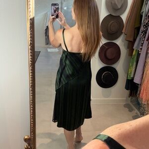 Adeam Moga - Asymmetric striped satin midi dress with lace inserts Dark green / black
