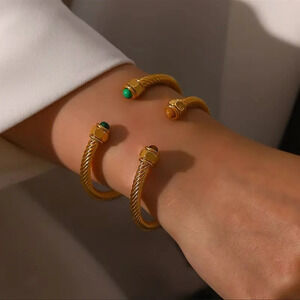 Adelaide Tiger Eye 18K Gold Stainless Steel Cuff Bracelet