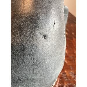 This item is in gently-used pre-owned condition. Please note that there is a scuff on the right toe as well as two small flaws on the back of the upper heel of both boots - see last three photos.