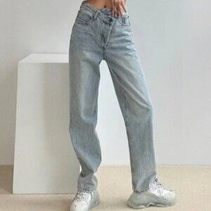 Adele B. Asymmetrical Crossover High-Waisted Straight Leg Jeans