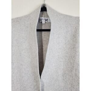 Adele Joyce Womens Medium Cardigan Sweater Gray Angora Wool Luxury Minimalist clean lines LambsWool Soft knit front pockets