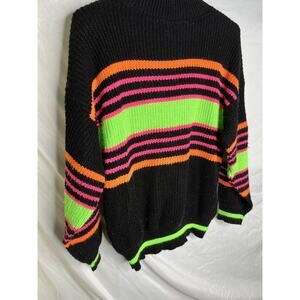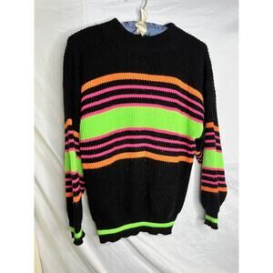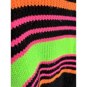 Adele Knitwear Sweater Pullover Black Neon Stripes Size M Acrylic Vintage 1990s