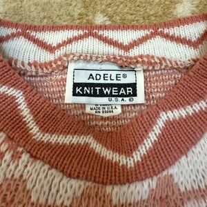 Adele Knitwear vintage white pink rose knit sweater women’s size large. Sweater is in fantastic preowned condition with no rips, holes, or stains. Made out of 100% acrylic and made in the USA. Measurements are 20 1/2 inches across x 27 1/2 length.