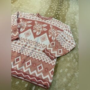Adele Knitwear vintage white pink rose knit sweater women’s size large