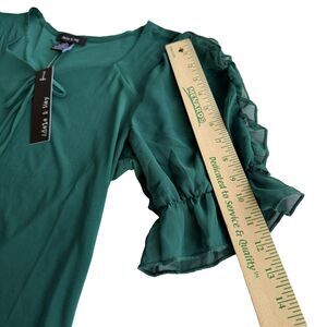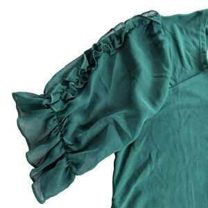 Adele & May Christmas Blouse Sweetheart Neck Stretch Green Ruffles Fancy NWT L