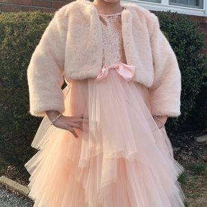 Sweet glamorous jacket made from ultra soft faux fur and silk lining. Long sleeves,Faux fur,Front closure. Only wear once. Blush color