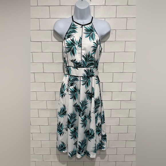 This fun and flirty flared A-line dress adds head turning style. Pleated halter dress is fully lined.