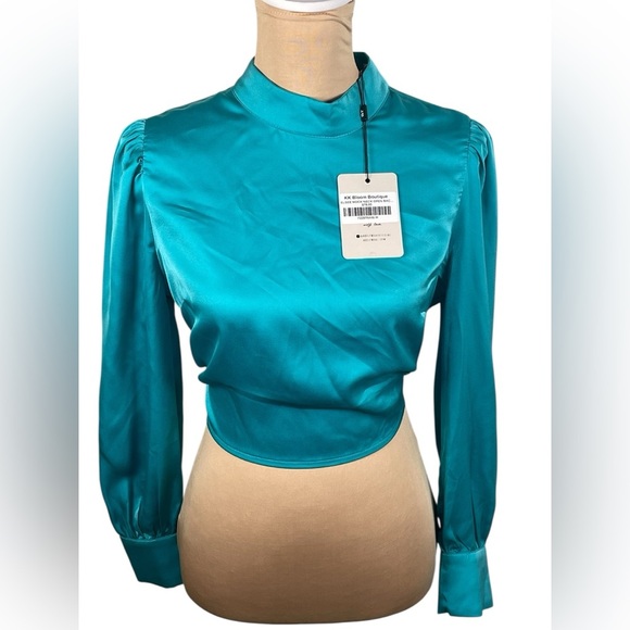 Adelyn Rae Blue Crop Blouse with Mandarin Collar NWT Medium