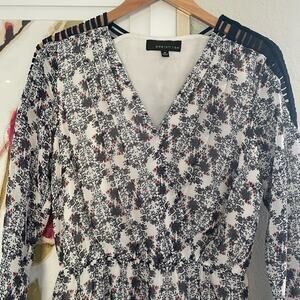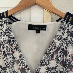 Adelyn Rae Blue Floral Mini Dress Surplice Sleeve Lattice Shoulder Medium