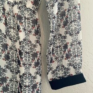 Sleeves have a one button closure at hem, it's a navy fabric covered button, the right sleeve is missing the button, otherwise the dress is like brand new!