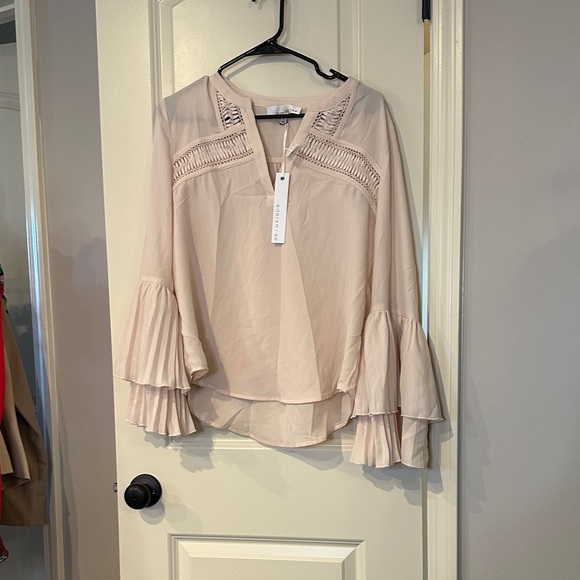 Adelyn Rae Blush Blouse with Ruffled Sleeves