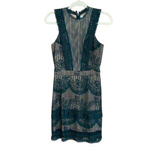 Adelyn Rae Cori Lace X-Small Green Sleeveless Women's Fit & Flare Mini Dress EUC
