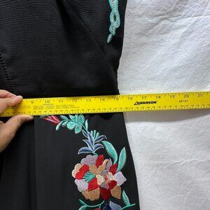 Adelyn Rae Culottes Jumpsuit Black Embroidered Floral Size Large Wide Leg Sleeve