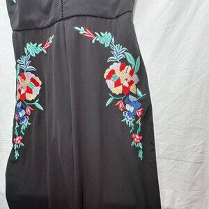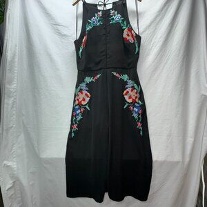 Adelyn Rae Culottes Jumpsuit Black Embroidered Floral Size Large Wide Leg Sleeveless