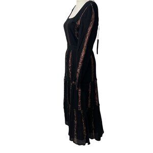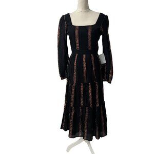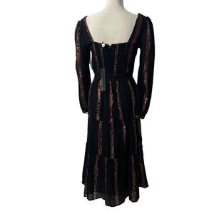 Adelyn Rae Dark Romantic Festival Chic Striped Long Sleeve Tiered Midi Dress S